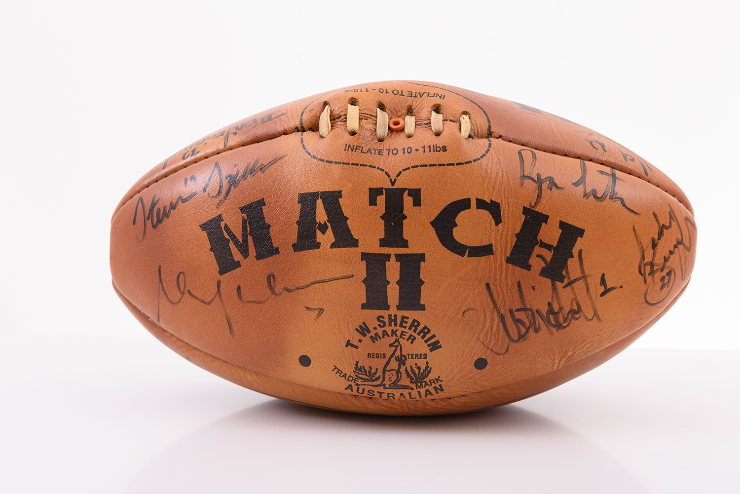 ST KILDA: T.W.SHERRIN AFL CENTENARY FOOTBALL SIGNED BY 1996 ST KILDA TEAM (WHO WON THEIR FIRST PRE-SEASON CUP).