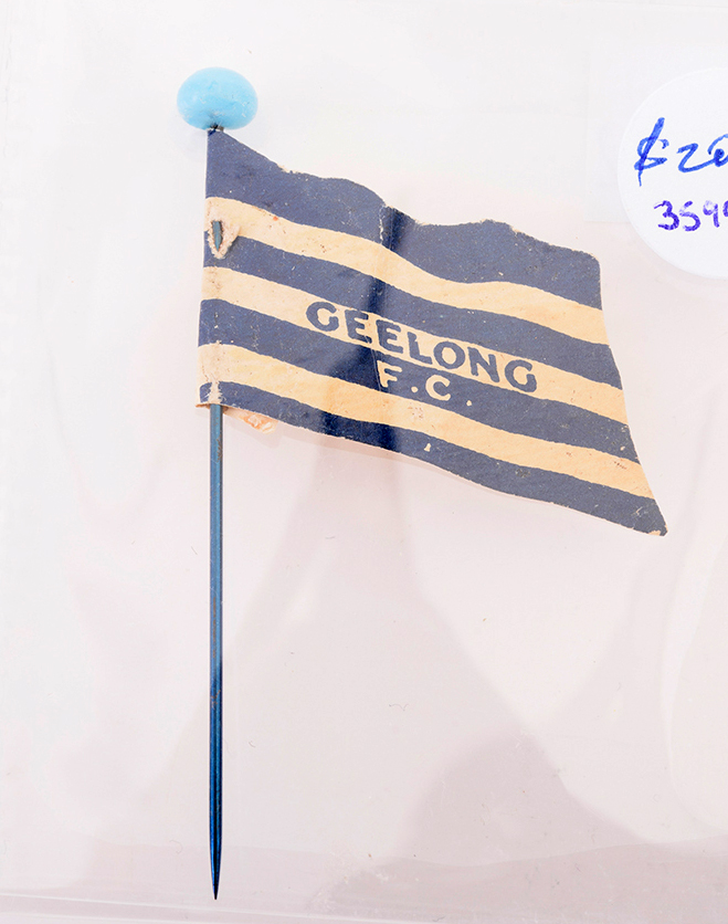 1908 WILLS "FOOTBALL FLAG SHAPED WITH PIN" [1/28] - GEELONG (BLANK ON REVERSE). G/VG.