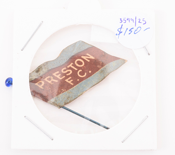 1908 WILLS "FOOTBALL FLAG SHAPED WITH PIN" [1/28] - PRESTON ("CAPSTAN" ON REVERSE). G/VG.