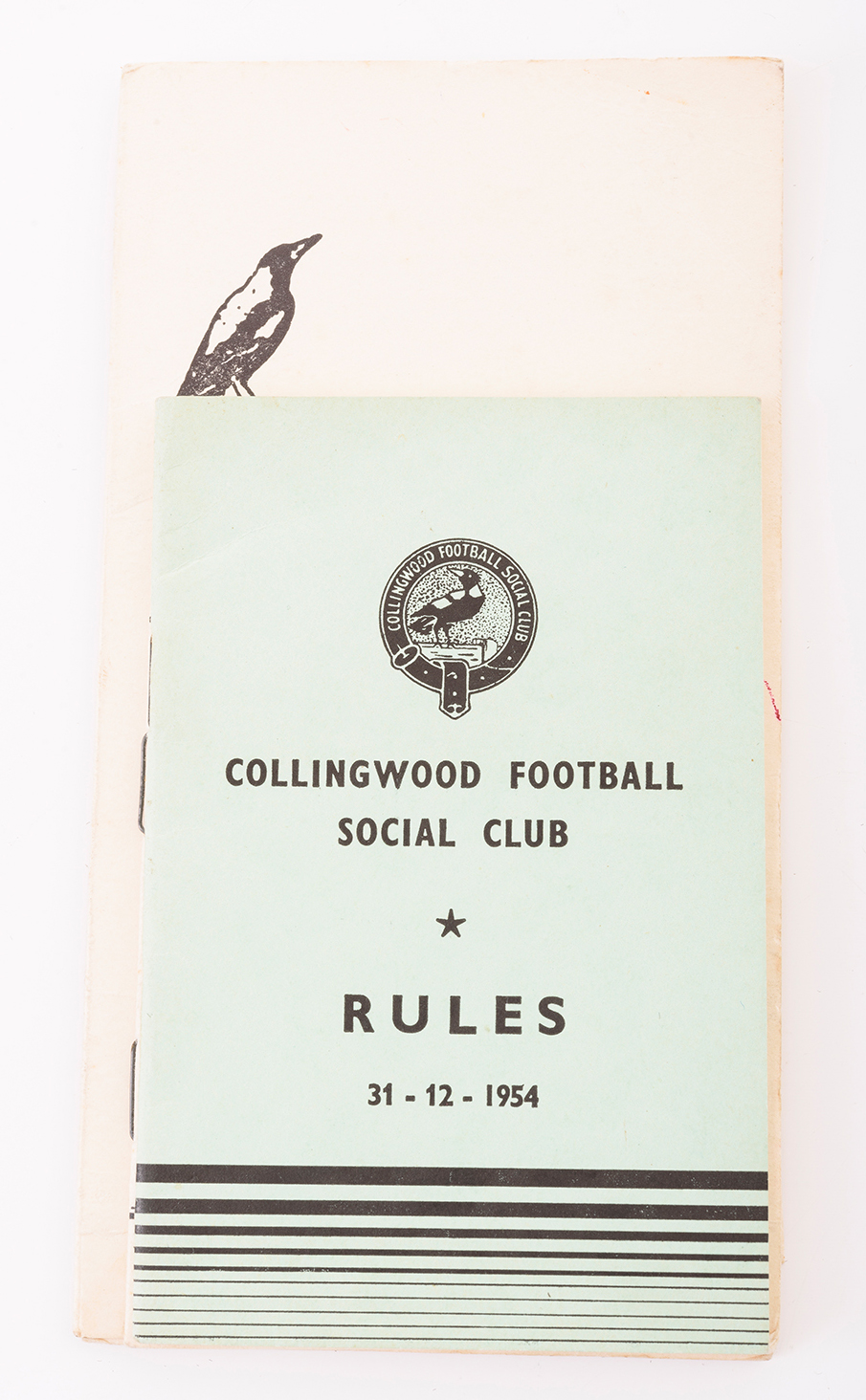 COLLINGWOOD: BOOKLETS - 1954 SOCIAL CLUB RULES; 1956 MEMBERS' SYLLABUS; "STIR UP THE STOVE! MAGPIES" WITH SONG LYRICS. ALSO 1968 FIXTURES FOR MELBOURNE & RICHMOND.
