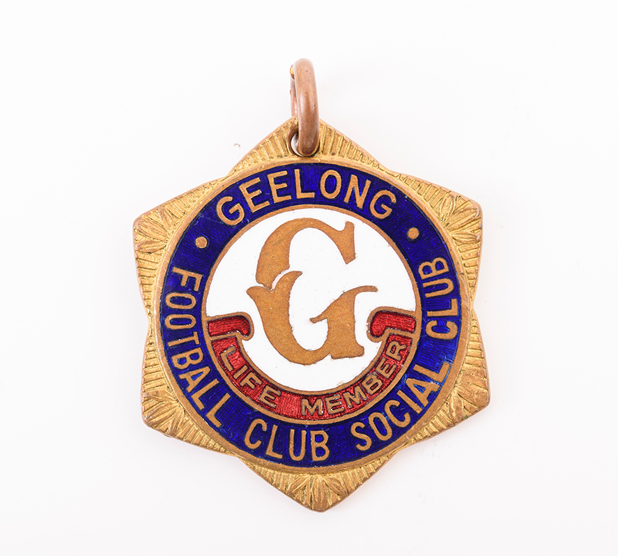 GEELONG: BADGE "GEELONG/FOOTBALL CLUB SOCIAL CLUB/LIFE MEMBER", WITH NUMBER "71" ON REVERSE.