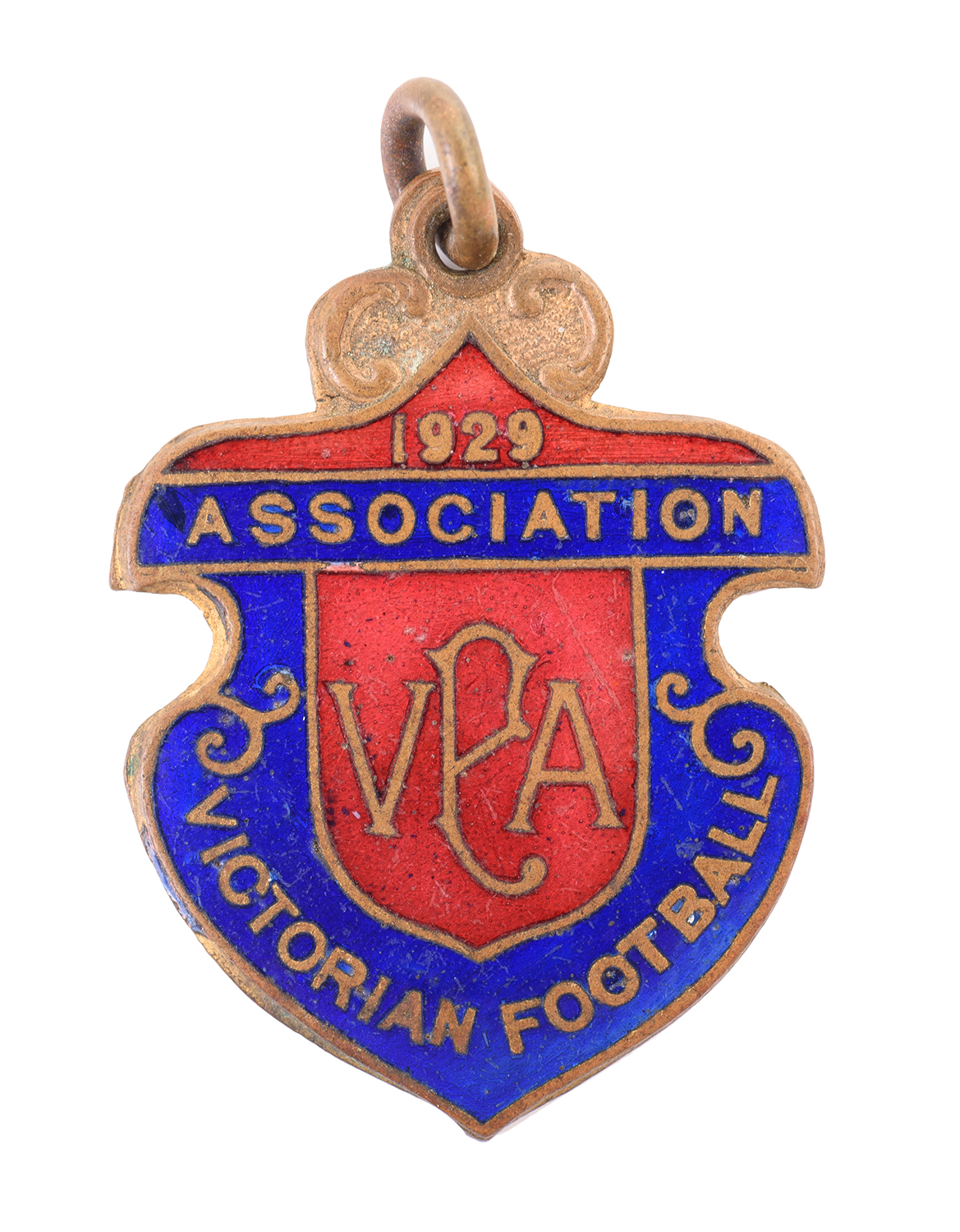 VFA: 1929 VICTORIAN FOOTBALL ASSOCIATION MEMBERSHIP BADGE, WITH NUMBER "184" ON REVERSE.