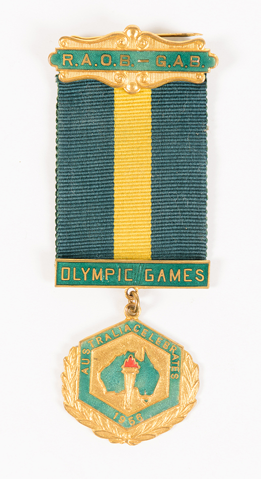 BUFFS MEDAL, WITH "R.A.O.B. - G.A.B." & "OLYMPIC GAMES" BARS, FRONT OF MEDAL WITH "AUSTRALIA CELEBRATES 1956" & OLYMPIC TORCH.