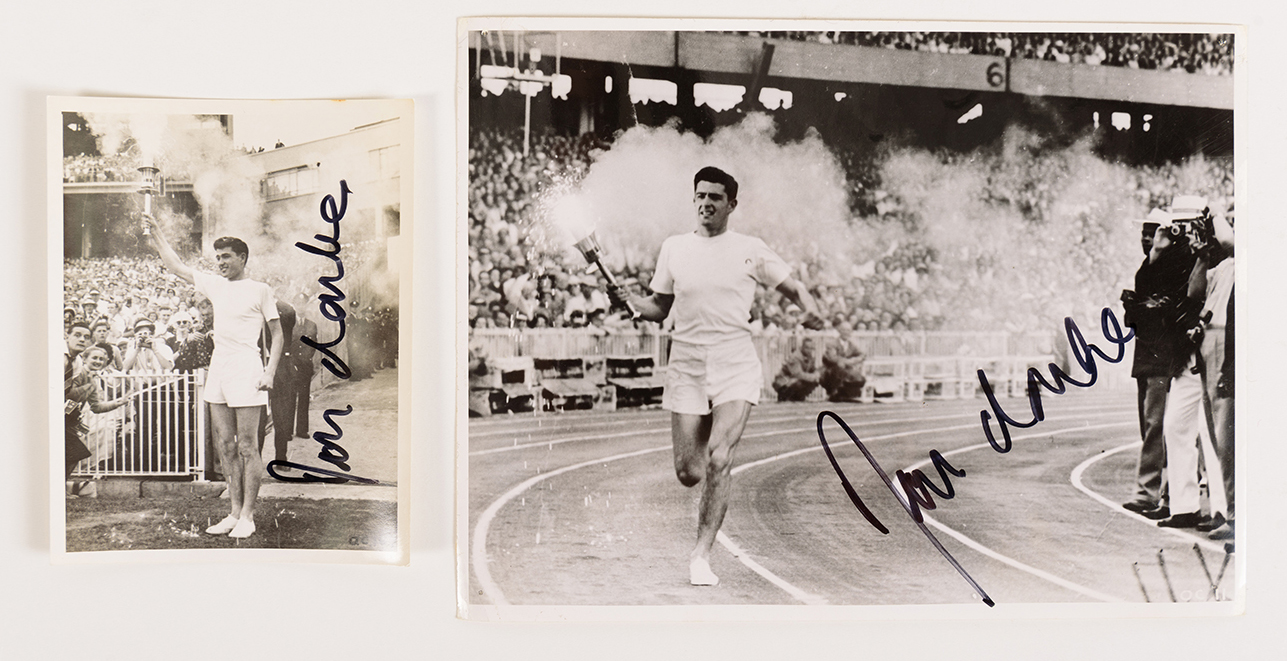RON CLARKE: GROUP OF 6 SIGNED PHOTOGRAPHS FROM TORCH RELAY & CAULDRON LIGHTING.