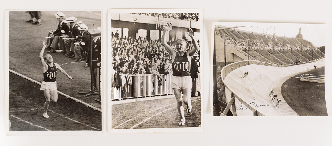 VLADIMIR KOUTS - 2 ACTION PHOTOGRAPHS FROM HIS VICTORY IN 10,000M; PLUS SIGNED PHOTOGRAPH OF GOLD MEDALLIST IAN BROWNE.