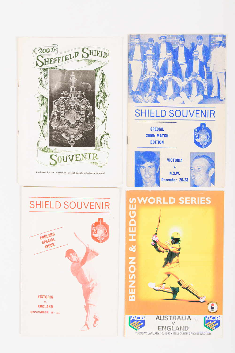 CRICKET PROGRAMMES (12), INCLUDING 1974-75 VICTORIA V ENGLAND & 200TH SHEFFIELD SHIELD MATCH VICTORIA V NSW.