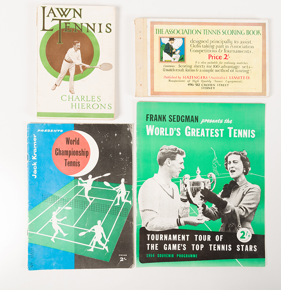 TENNIS: EPHEMERA (28 ITEMS), NOTED PROGRAMMES (6) INCLUDING 1953 WIMBLEDON; BOOK "LAWN TENNIS" BY HIERONS [LONDON, 1925].