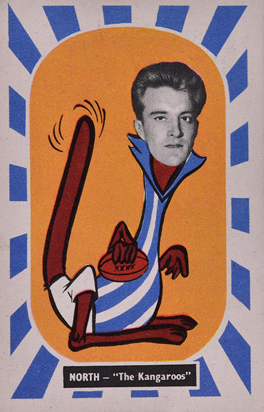 1957 KORNIES "FOOTBALLER - MASCOT SWAP CARDS" [1/36] - NO.4 JOCK SPENCER (MELBOURNE). G/VG.