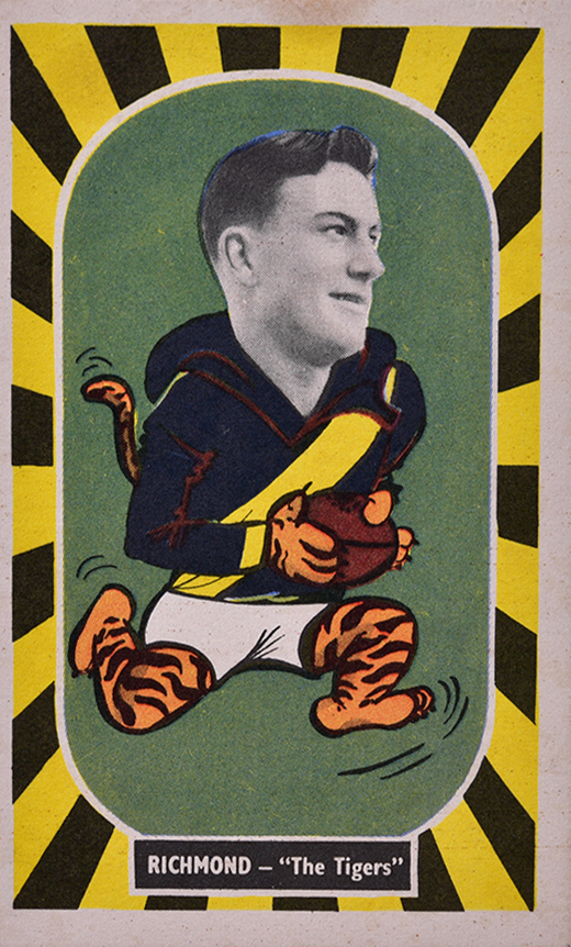 1957 KORNIES "FOOTBALLER - MASCOT SWAP CARDS" [1/36] - NO.35 LAURIE SHARP (RICHMOND). G/VG.