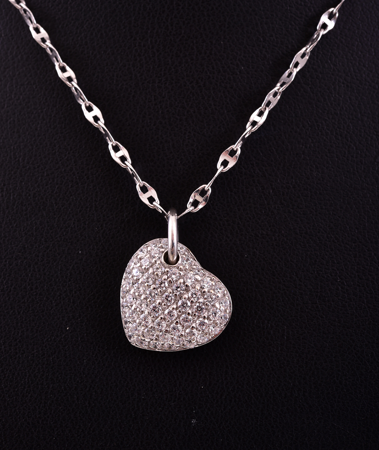 A CUBIC ZIRCONIA SET HEART PENDANT TO A CHAIN IN 18CT WHITE GOLD