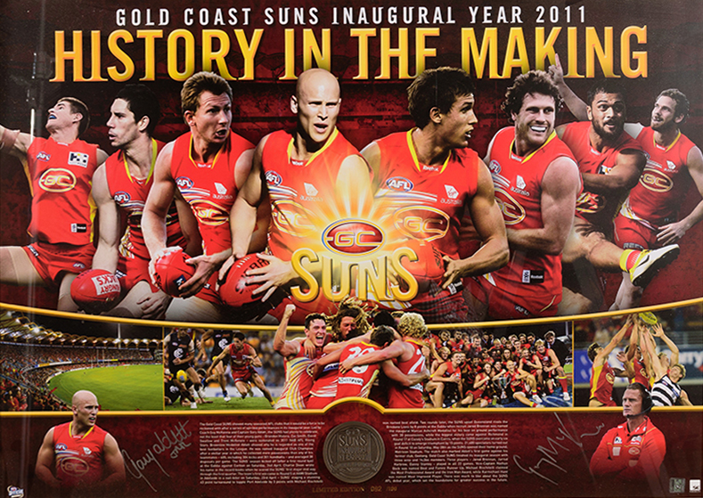 GOLD COAST: 2011 INAUGURAL YEAR DISPLAY SIGNED GARY ABLETT JR & GUY McKENNA; SIGNED GARY ABLETT JR DISPLAY; 2011 TEAM POSTER.