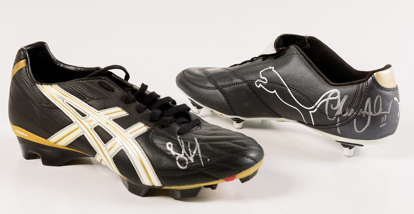 NORTH MELBOURNE: FOOTBALL BOOTS (2) SIGNED BY GLENN ARCHER & BRENT HARVEY; PHOTOS (2) SIGNED WAYNE CAREY & BRENT HARVEY; FOOTBALL SIGNED BRENT HARVEY.