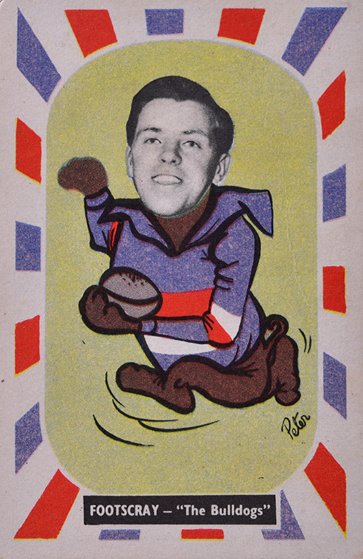1957 KORNIES "FOOTBALLER - MASCOT SWAP CARDS" [1/36] - NO.14 TED WHITTEN (FOOTSCRAY). G/VG.