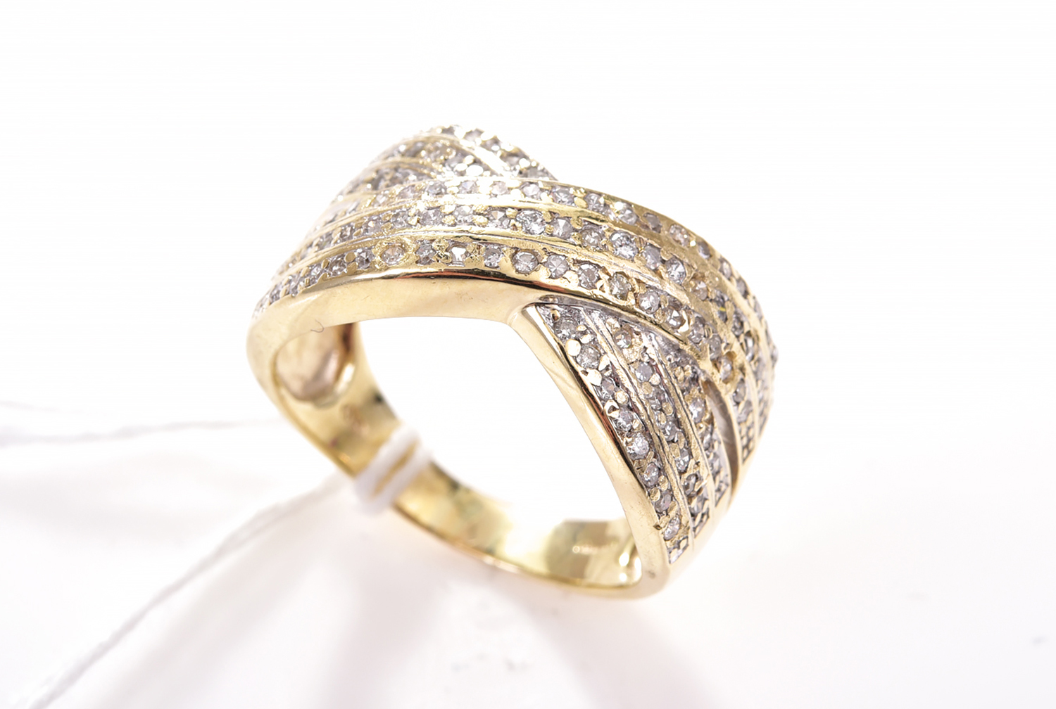 A DIAMOND CROSSOVER COCKTAIL RING, IN 9CT GOLD, RING SIZE Q.