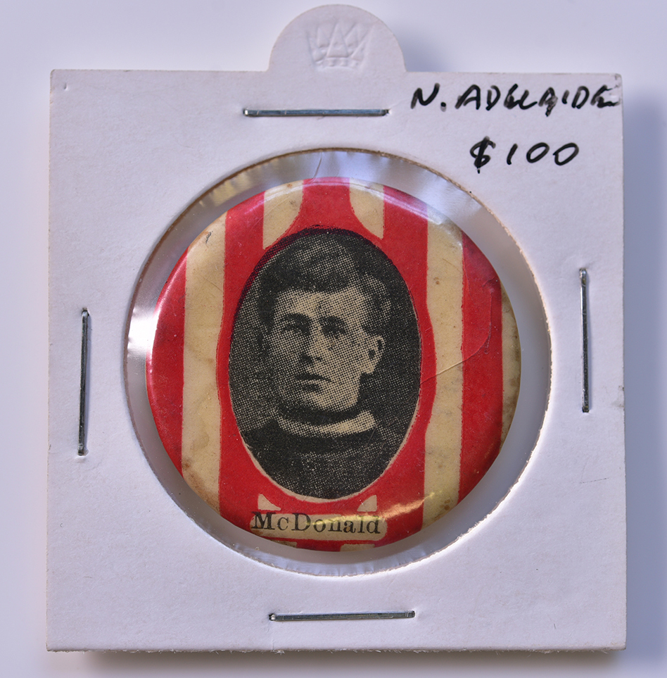1922 BANK OF ADELAIDE "SANFL PLAYER BADGES" [1/16 KNOWN] - McDONALD (NTH ADELAIDE). FAIR/G (NO PIN).