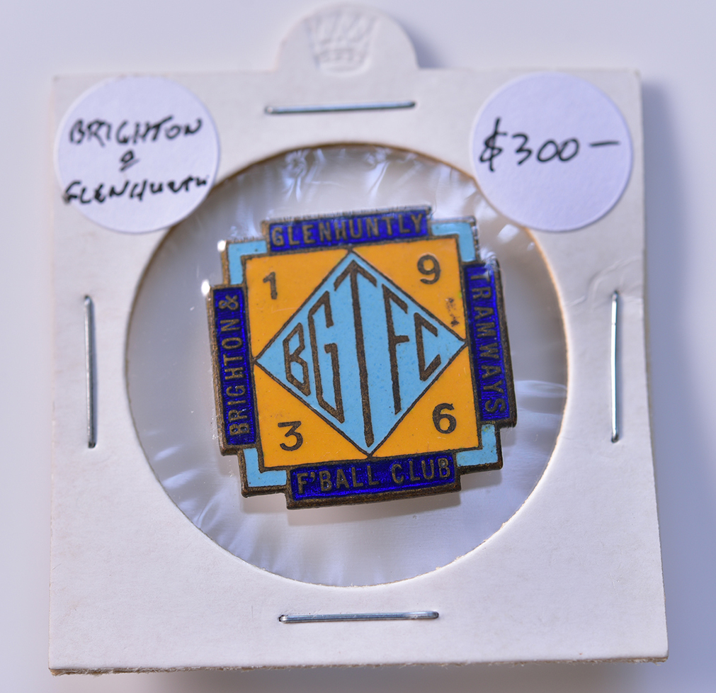BRIGHTON & GLENHUNTLY TRAMWAYS FOOTBALL CLUB: MEMBERSHIP BADGES (4) FOR 1936, 1938, 1940 & 1941.