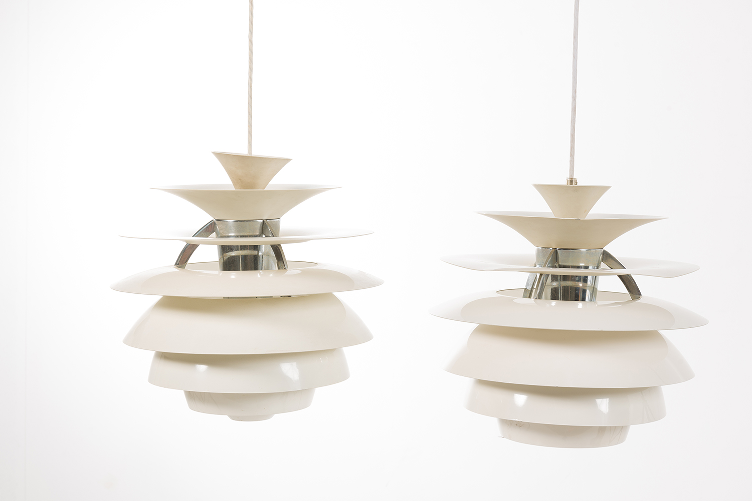 POUL HENNINGSEN PAIR OF PH 'SNOWBALL' PENDANT CEILING LIGHTS FOR LOUIS POULSEN
