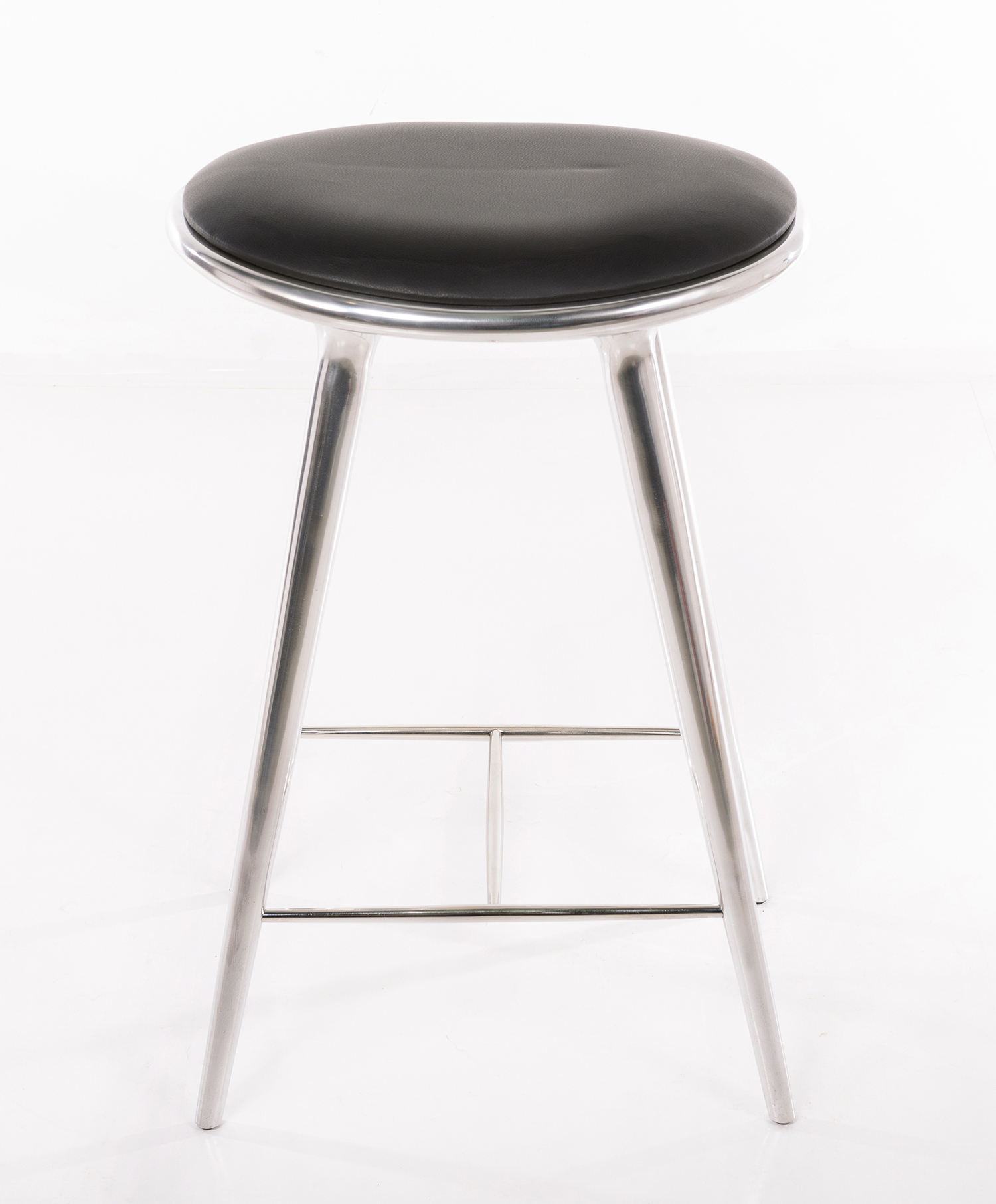 Recycled polished aluminium with black leather seat
