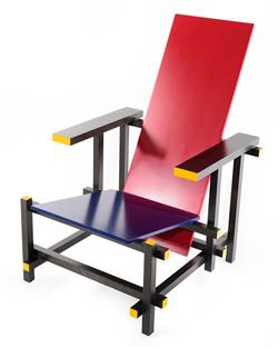 Frame black dyed beech with blue seat and red back rest in painted plywood