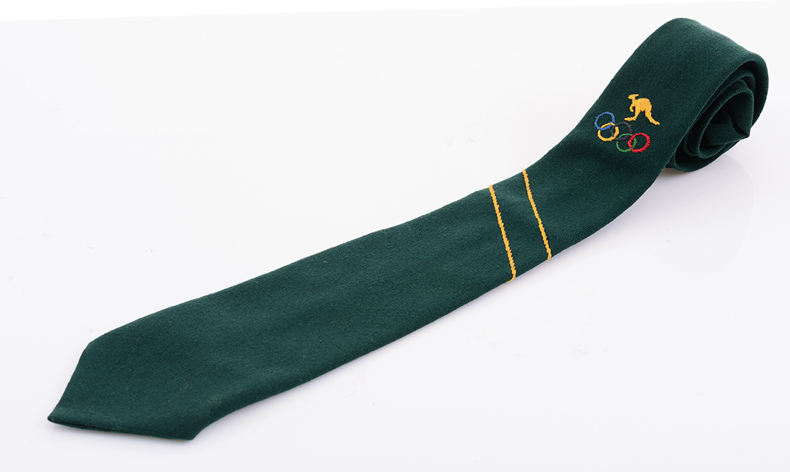 MURRAY ROSE''S 1956 OLYMPIC TIE WITH EMBROIDERED KANGAROO OVER OLYMPIC RINGS