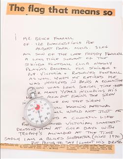 ST KILDA: "HEUER" STOPWATCH USED BY ST KILDA'S TIME-KEEPER, FRED FARRELL, IN THE 1966 GRAND FINAL. FRED SOUNDED A TEN-TOOT VICTORY TUNE ON THE MCG SIREN TO END THE MATCH.
