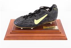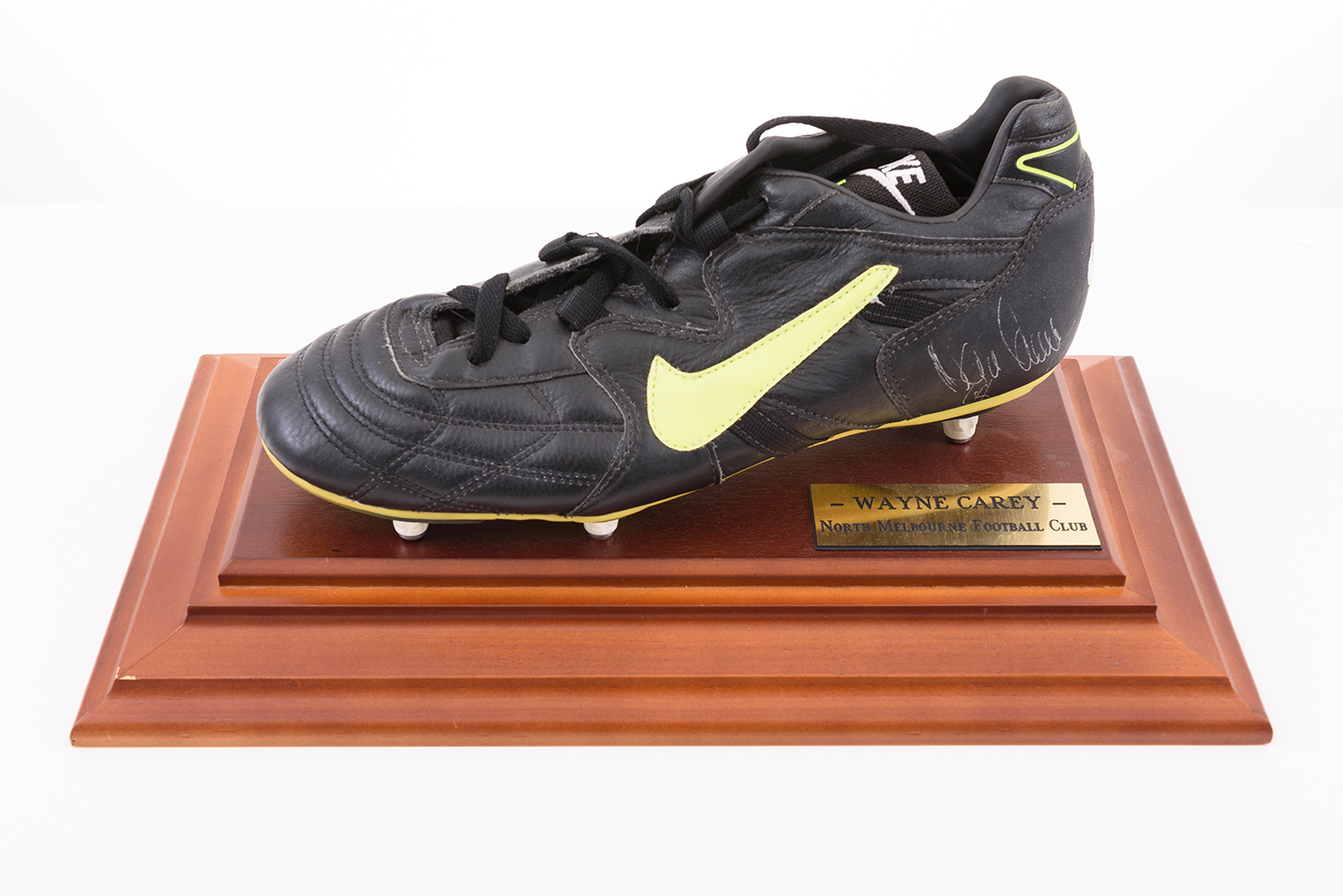 WAYNE CAREY SIGNED BOOT; PLUS GRAHAM "POLLY" FARMER SIGNED DISPLAY.