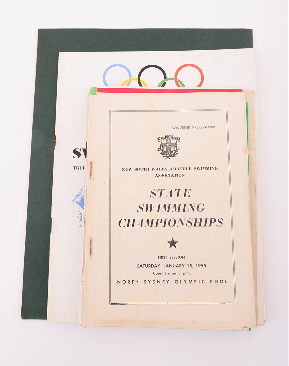 PROGRAMMES, 1953-62, NOTED SCHOOL (3); NSW CHAMOIONSHIPS (9); AUSTRALIAN CHAMPIONSHIPS (7); 1956 NZ TOUR (5); OLYMPIC TRIALS (3); 1956 OLYMPICS (8); POST-OLYMPICS (2) & USA (2). TOTAL 39.