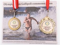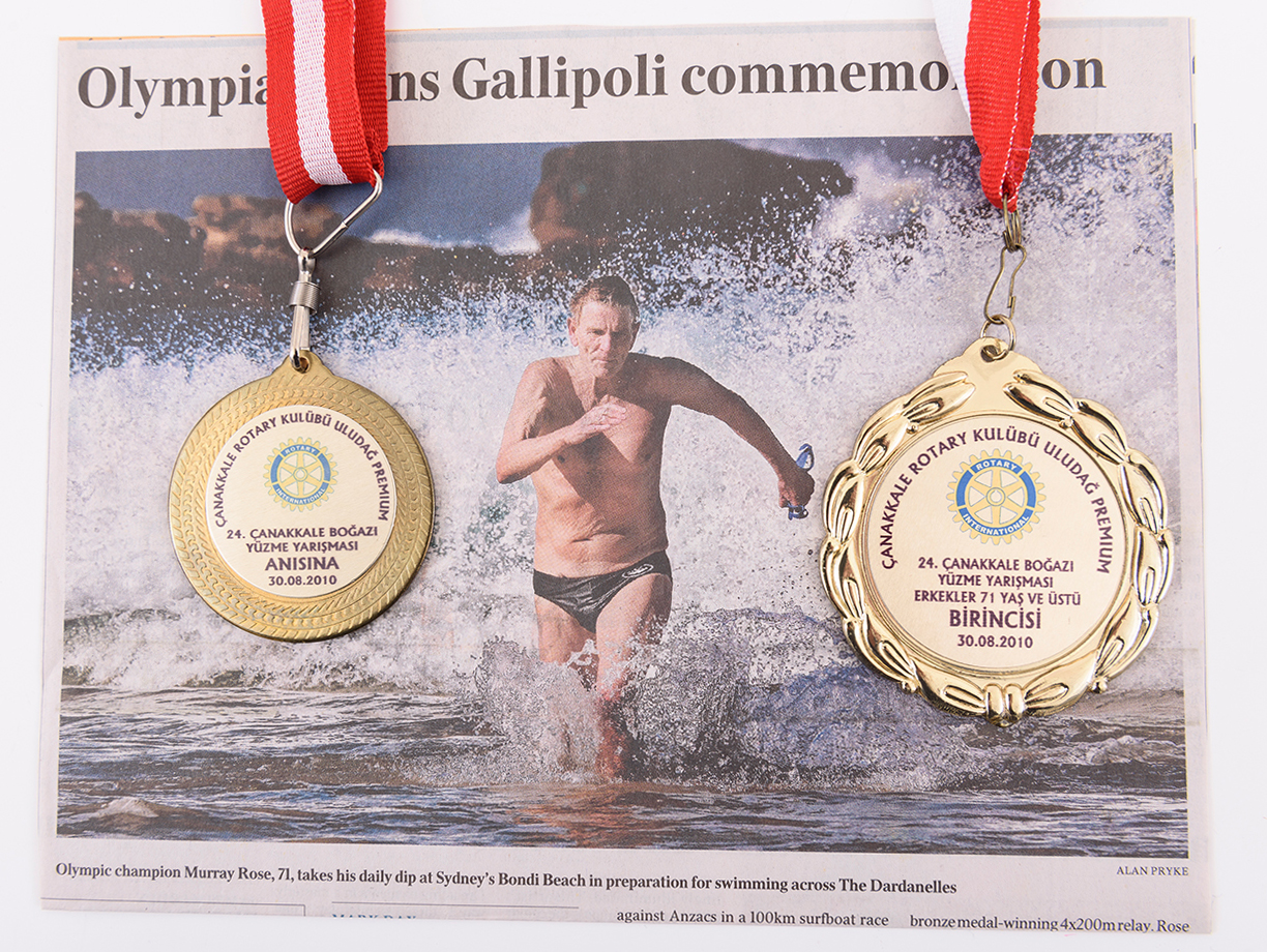 2010 GALLIPOLI SWIM ACROSS DARDANELLES: MURRAY ROSE'S MEDALS (2), CERTIFICATE & PRESS CLIPPING.