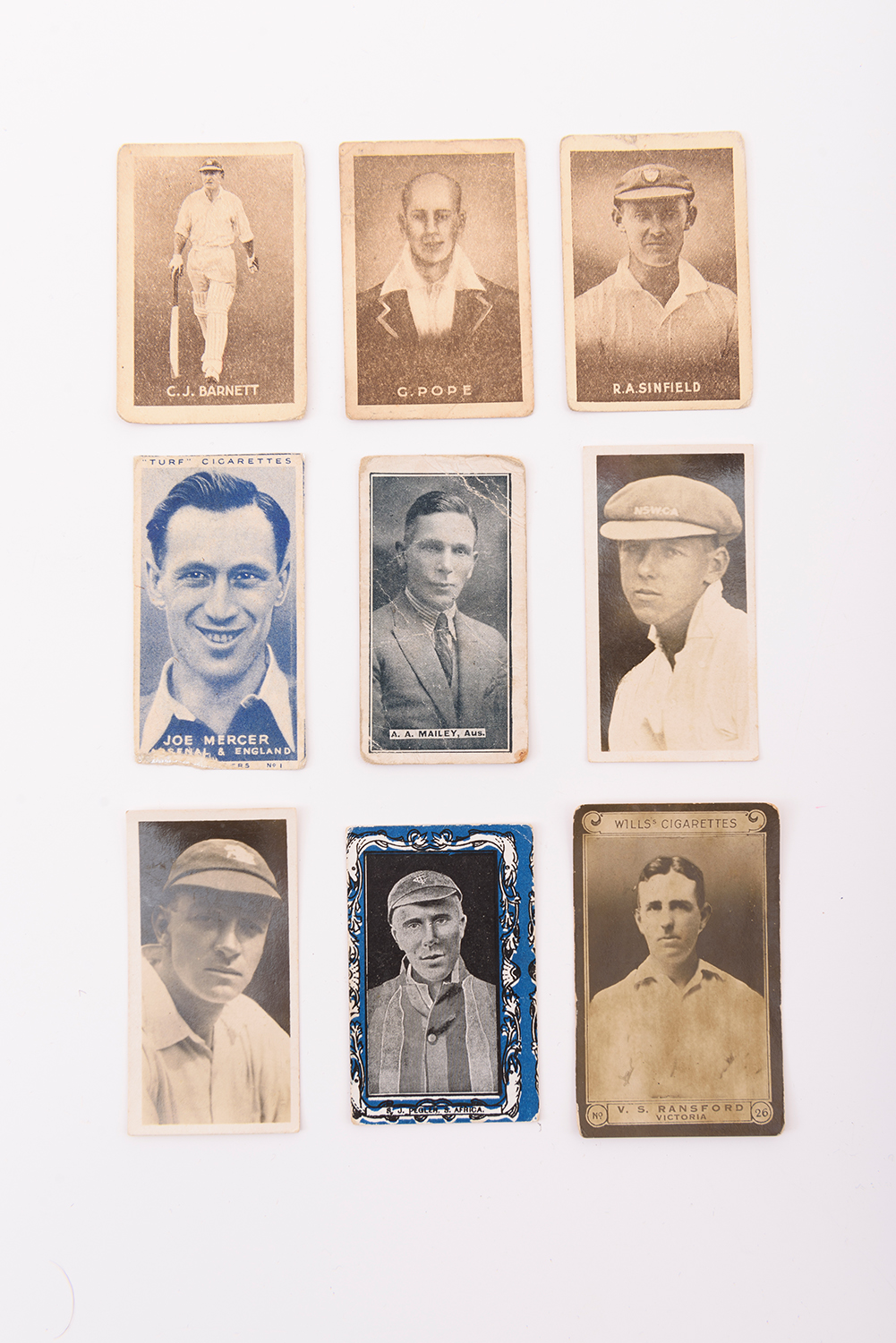 1905-51 CRICKET CARDS (175), NOTED 1938 BLACK CROW COUGH DROPS "ENGLISH CRICKETERS" (3). POOR/VG.