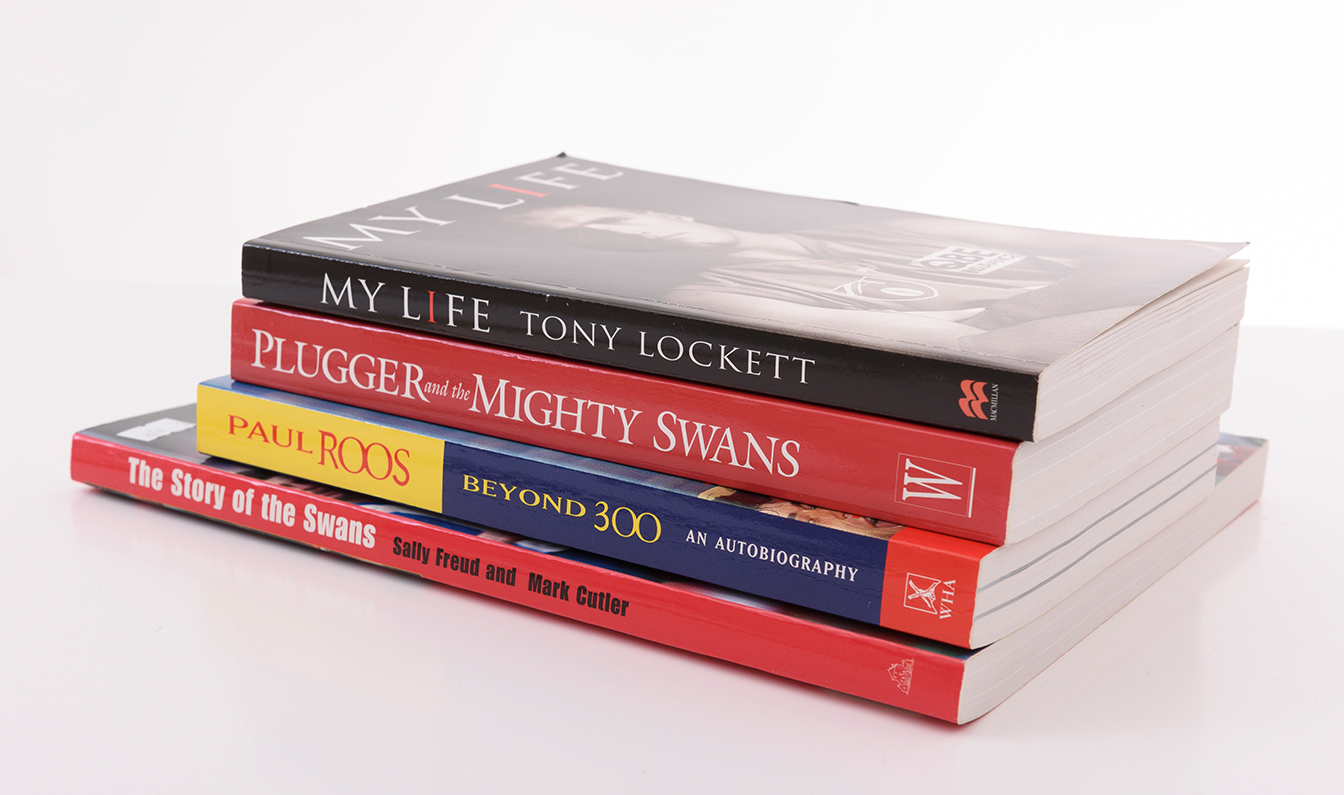 SYDNEY SWANS: COLLECTION WITH PAUL KELLY CAPTAIN'S PLATE; BOOKS (7) INCLUDING "IN THE BLOOD" BY MAIN [MELBOURNE, 2009]; DVD'S (6).