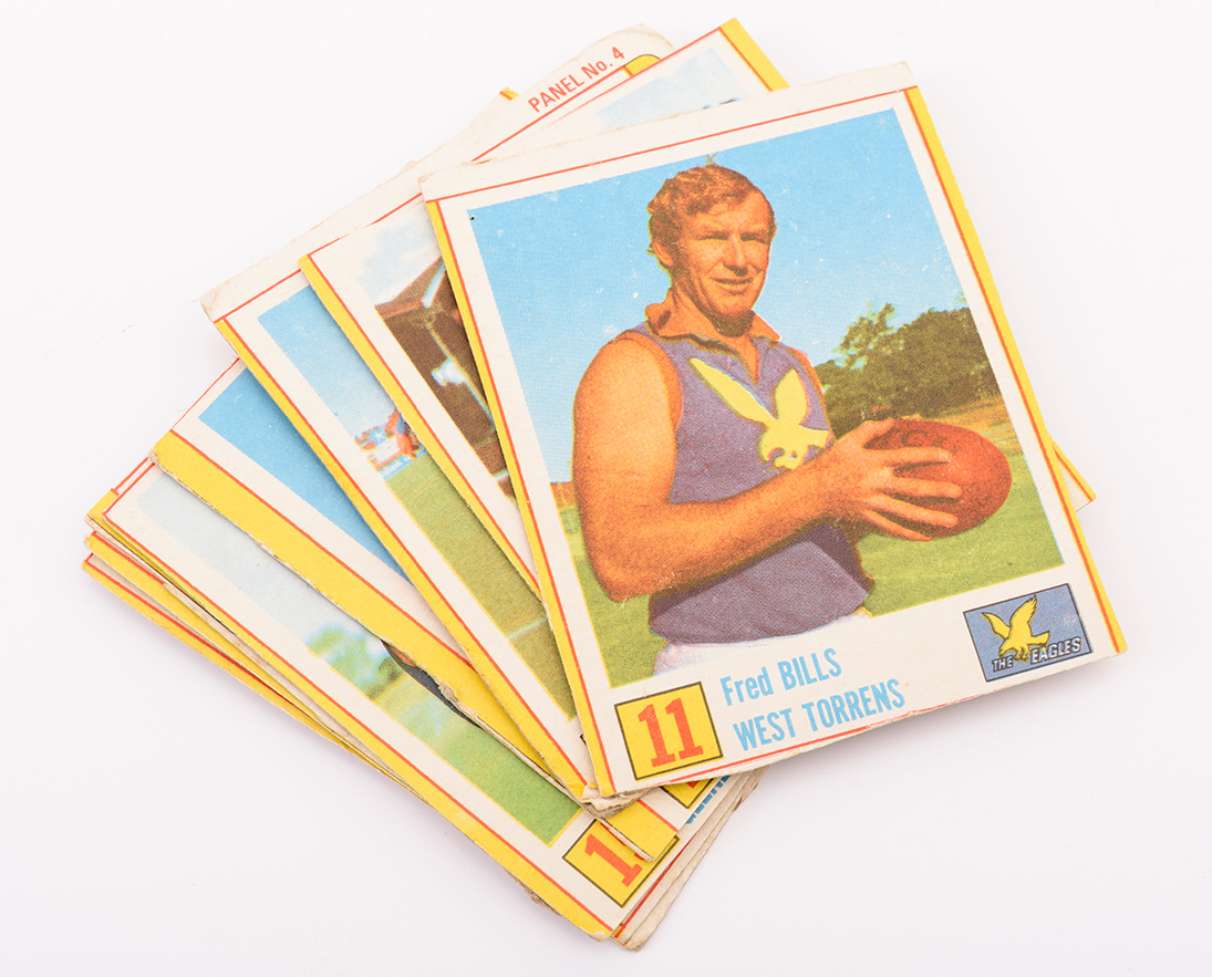 1970-73 KELLOGGS, NOTED 1970 "VFL FOOTY STARS" [5/48]; 1971 "VFL FOOTY FESTIVAL" 7/48]; 1971 "SANFL FOOTY FESTIVAL" [8/48]; 1973 "AUSTRALIAN FOOTBALL CARICATURES" [2/30]. FAIR/VG.