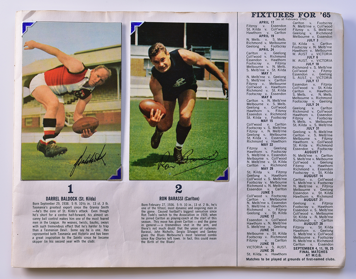 1965 MOBIL "FOOTY PHOTOS 1965 - VFL FOOTBALLERS", COMPLETE SET [40]. G/VG (STUCK INTO ALBUM WITH PHOTO CORNERS).