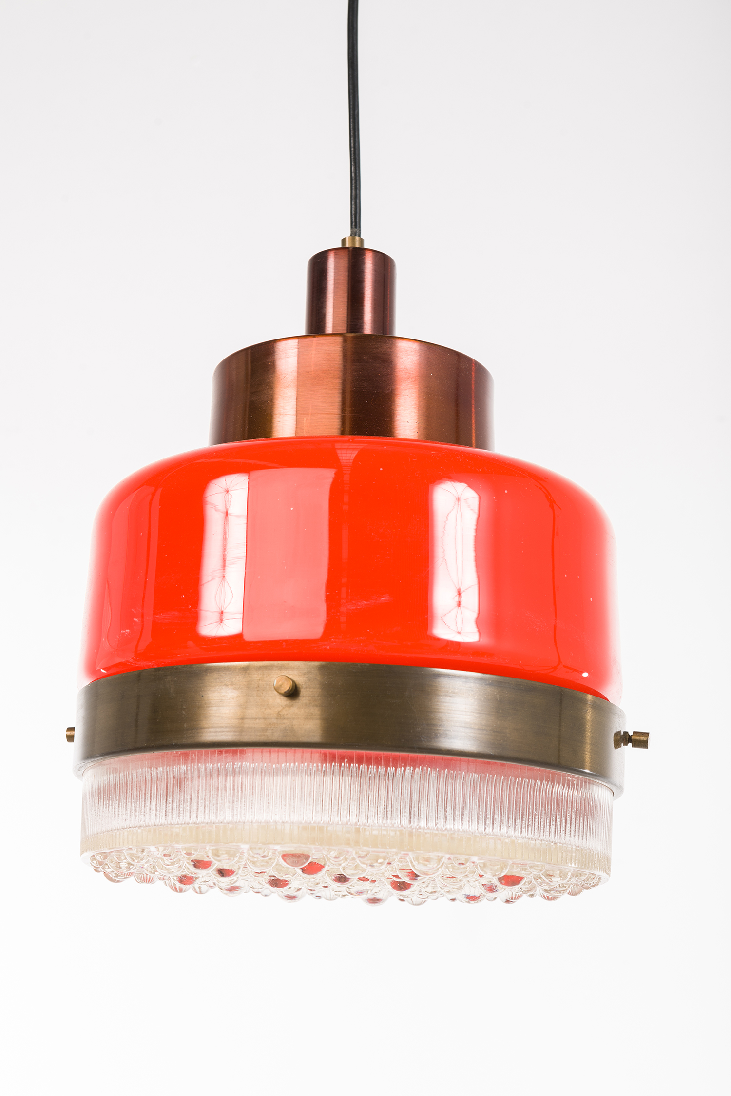 Orange and transparent glass with brass fittings