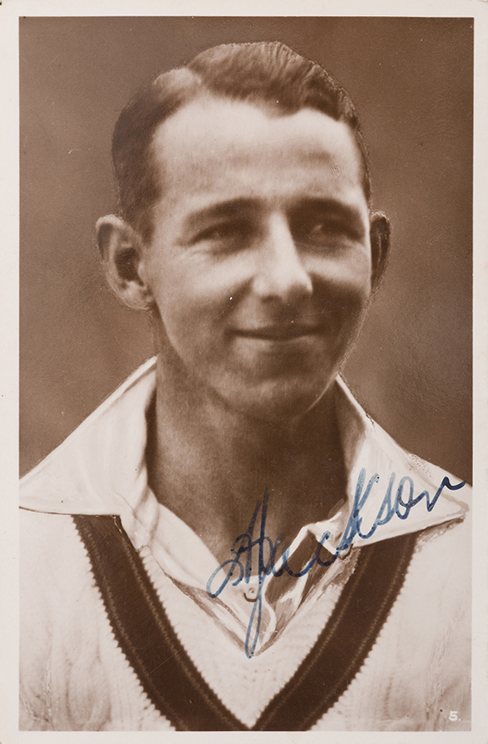 ARCHIE JACKSON, SIGNATURE ON HIS POSTCARD FROM "1930 AUSTRALIAN TEST TEAM SERIES". [ARCHIE JACKSON PLAYED 8 TESTS 1929-31, BEFORE TRAGICALLY DYING OF TB AT 23].