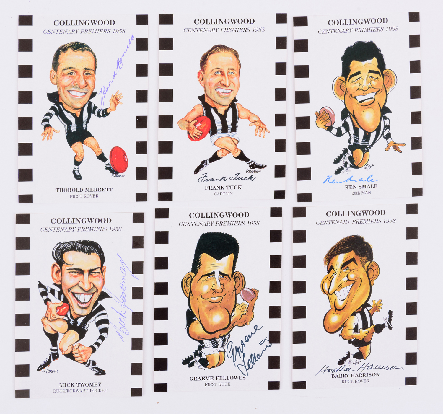 1998 PIG SKIN PROMOTIONS "COLLINGWOOD 1958 PREMIERSHIP TEAM RE-UNION", COMPLETE SET [24 + TITLE CARD], WITH 21 CARDS SIGNED INCLUDING THOROLD MERRETT, MURRAY WEIDEMAN & KEVIN ROSE.