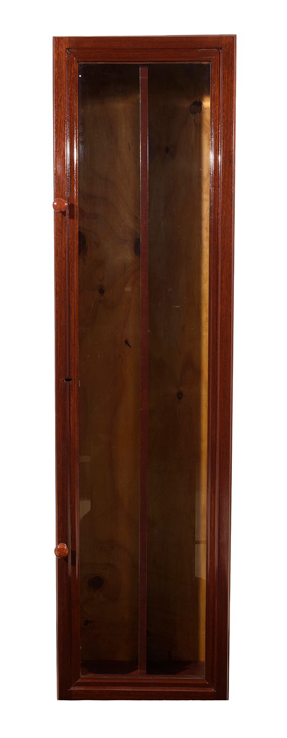 DISPLAY CASE FOR WISDENS, TWO SHELVES WITH GLASS FRONT, OVERALL 165 X 43 CM