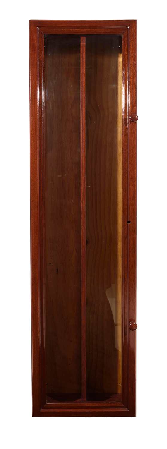 DISPLAY CASE FOR WISDENS, TWO SHELVES WITH GLASS FRONT, OVERALL 165 X 43 CM