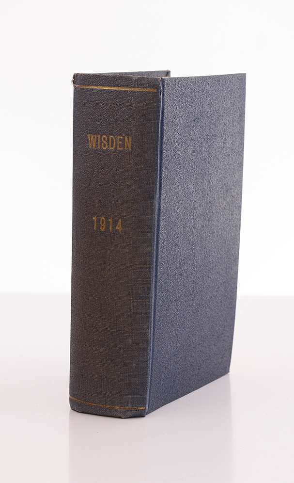 "WISDEN CRICKETERS ALMANACK" FOR 1914, REBOUND IN BLUE CLOTH, WITH FRONT AND BACK WRAPPERS, GOOD CONDITION