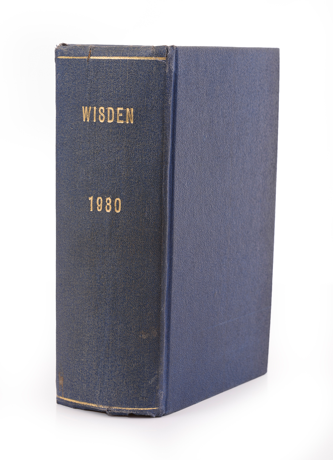 "WISDEN CRICKETERS ALMANACK" FOR 1930-39, REBOUND IN BLUE CLOTH, FAIR/GOOD CONDITION