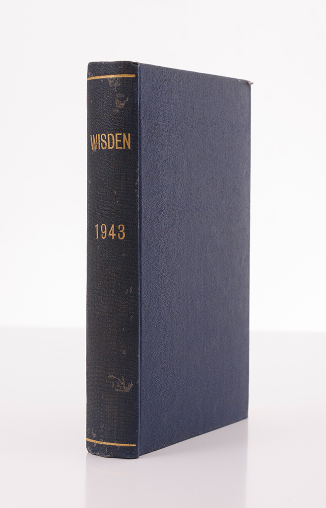 "WISDEN CRICKETERS ALMANACK" FOR 1943, REBOUND IN BLUE CLOTH, WITH FRONT AND BACK WRAPPERS, GOOD CONDITION