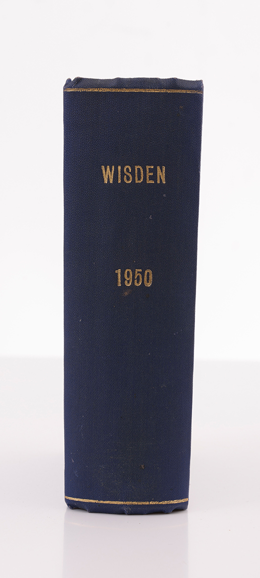 "WISDEN CRICKETERS ALMANACK" FOR 1950-59. EDITIONS FOR 1950-55 AND 57-58 REBOUND IN BLUE CLOTH; 1956 HARDBACK; 1959 CLOTH COVER. FAIR/GOOD CONDITION