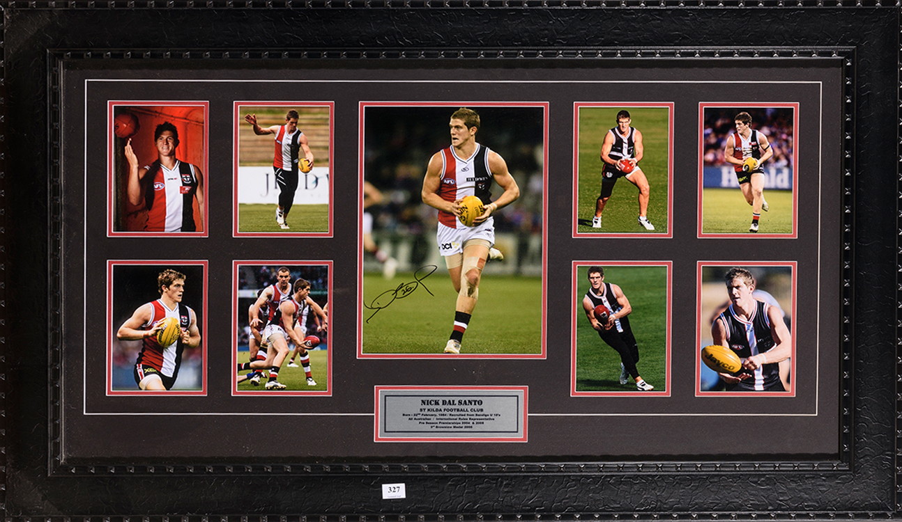 NICK DAL SANTO (ST KILDA), SIGNED DISPLAY, FRAMED & GLAZED, 102 X 64 CM