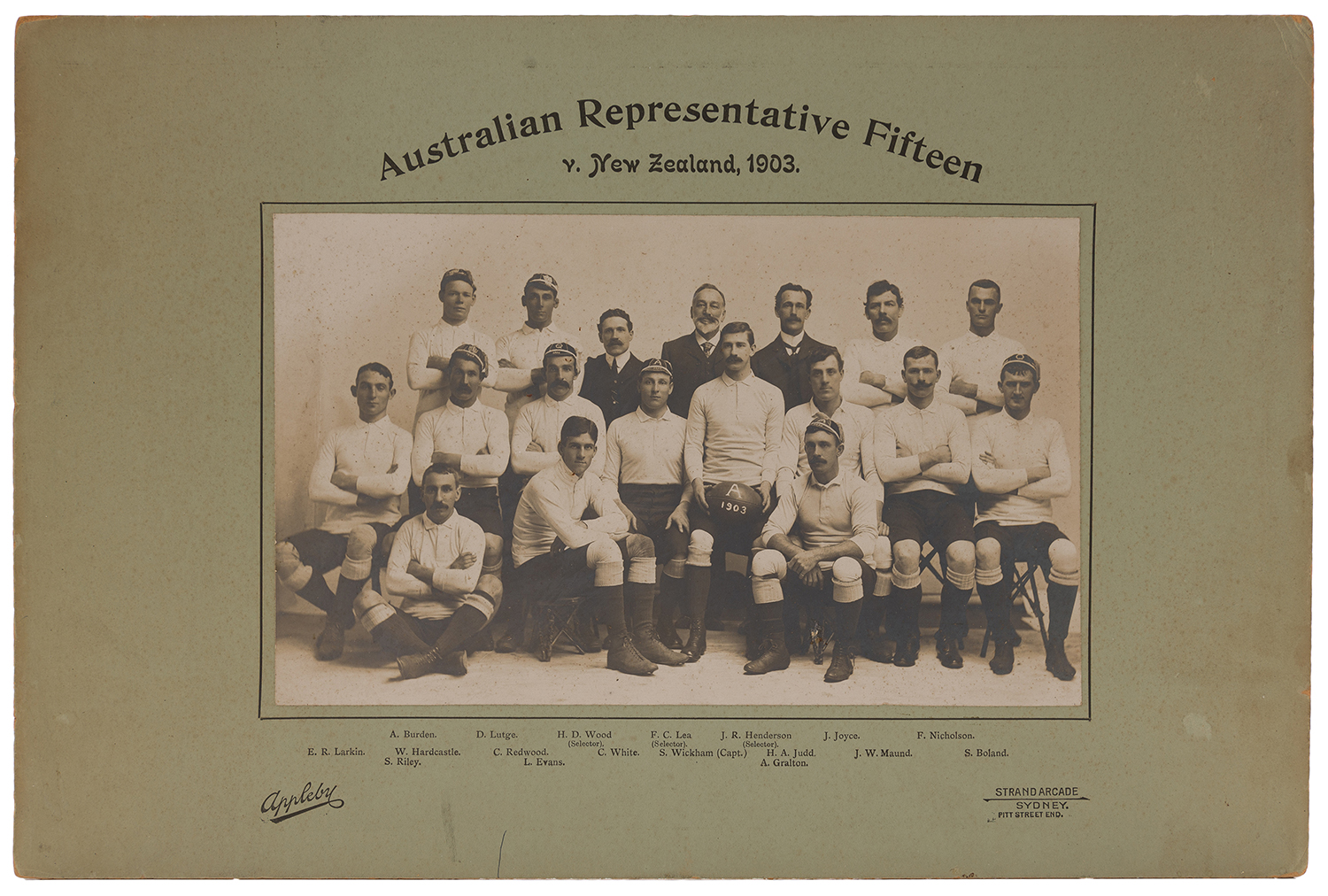 1903 AUSTRALIAN REP.15 RUGBY UNION V NEW ZEALAND, OFFICIAL TEAM PHOTOGRAPH. AUSTRALIA'S FIRST TOUR TO NZ. (On view only in Sydney, items to be collected from Sydney at purchasers expense).