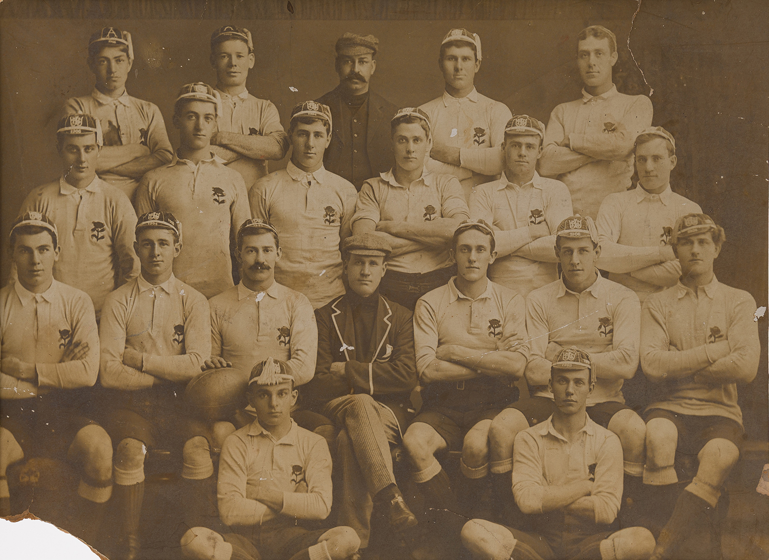 c1906-07 NSW/AUSTRALIA RUGBY UNION TEAM, OFFICIAL PHOTOGRAPH, INCLUDING DALLY MESSENGER & MANY PLAYERS WHO DEFECTED TO RUGBY LEAGUE IN 1907. (On view only in Sydney, items to be collected from Sydney at purchasers expense).