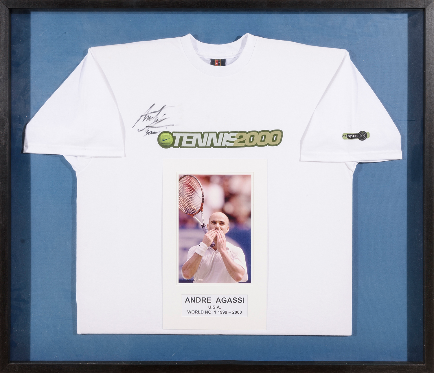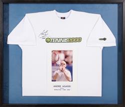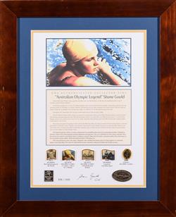 FRAMED PRINTS (4), NOTED ANDRE AGASSI, SHANE GOULD, DAMIEN FLEMMING & "FIVE DAY WAUGH"