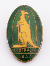 1937 KANGAROOS TOUR OVAL BADGE WITH KANGAROO & TEXT "AUSTRALIA 1937" EX RAY STEHR COLLECTION. (On view only in Sydney, items to be collected from Sydney at purchasers expense).
