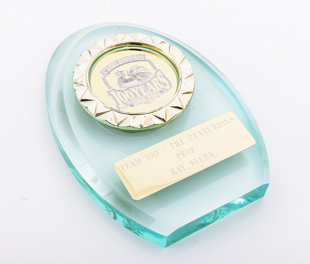 EASTERN SUBURBS: POSTHUMOUS AWARD TO RAY STEHR FOR BEING SELECTED AS PROP IN THE CENTURIANS - THE ROOSTERS TEAM OF THE CENTURY. (On view only in Sydney, items to be collected from Sydney at purchasers expense).