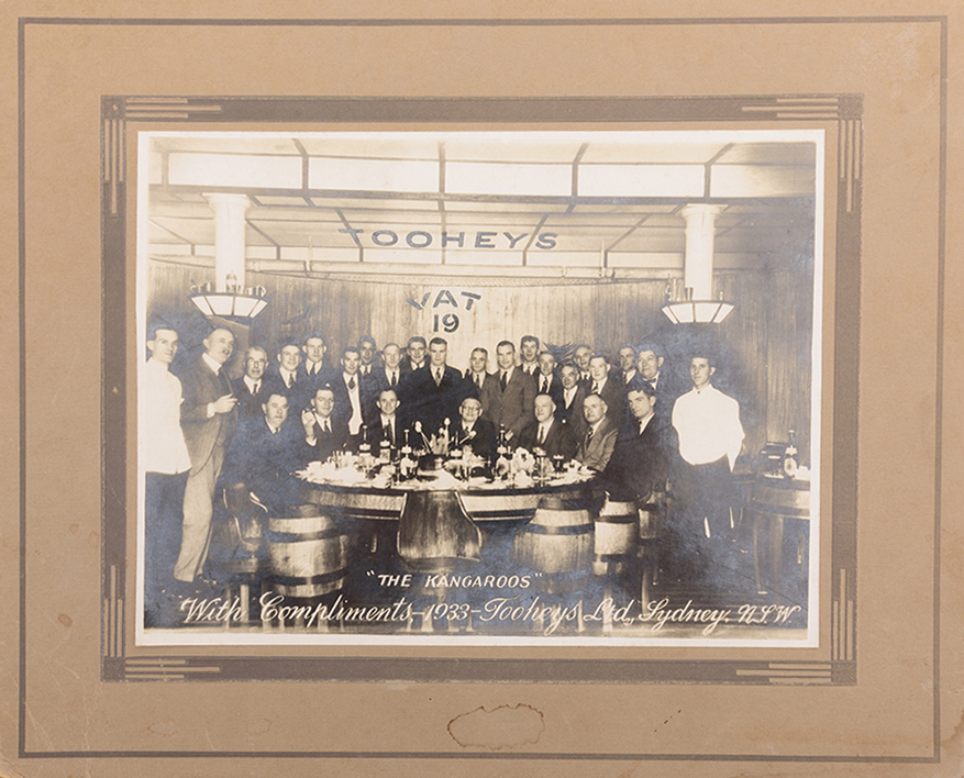 1933 KANGAROOS, PHOTO OF THE TEAM VISITING TOOHEYS BREWERY IN SYDNEY, 30 X 25CM. (On view only in Sydney, items to be collected from Sydney at purchasers expense).