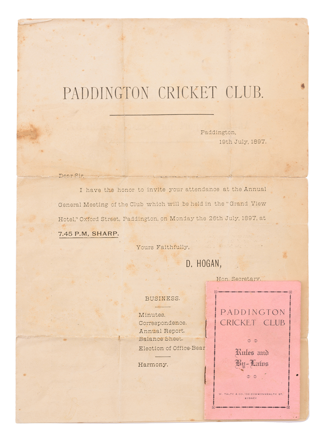 PADDINGTON CRICKET CLUB: ANNUAL REPORT 1896-97; PLUS RULES & BYLAWS c1927.