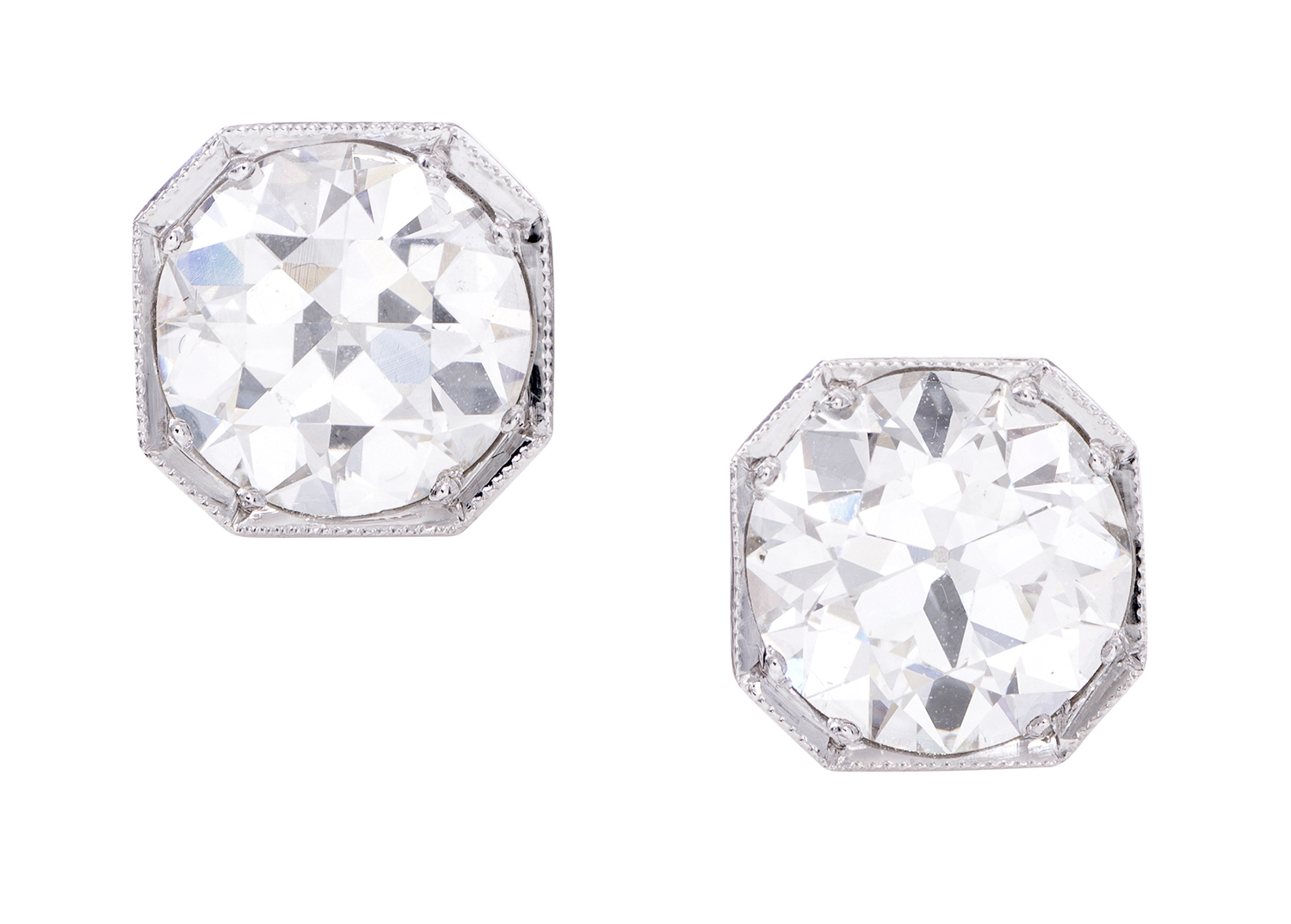 Each comprising a round old European cut diamond of 2.10cts, hand crafted in 18ct white gold.